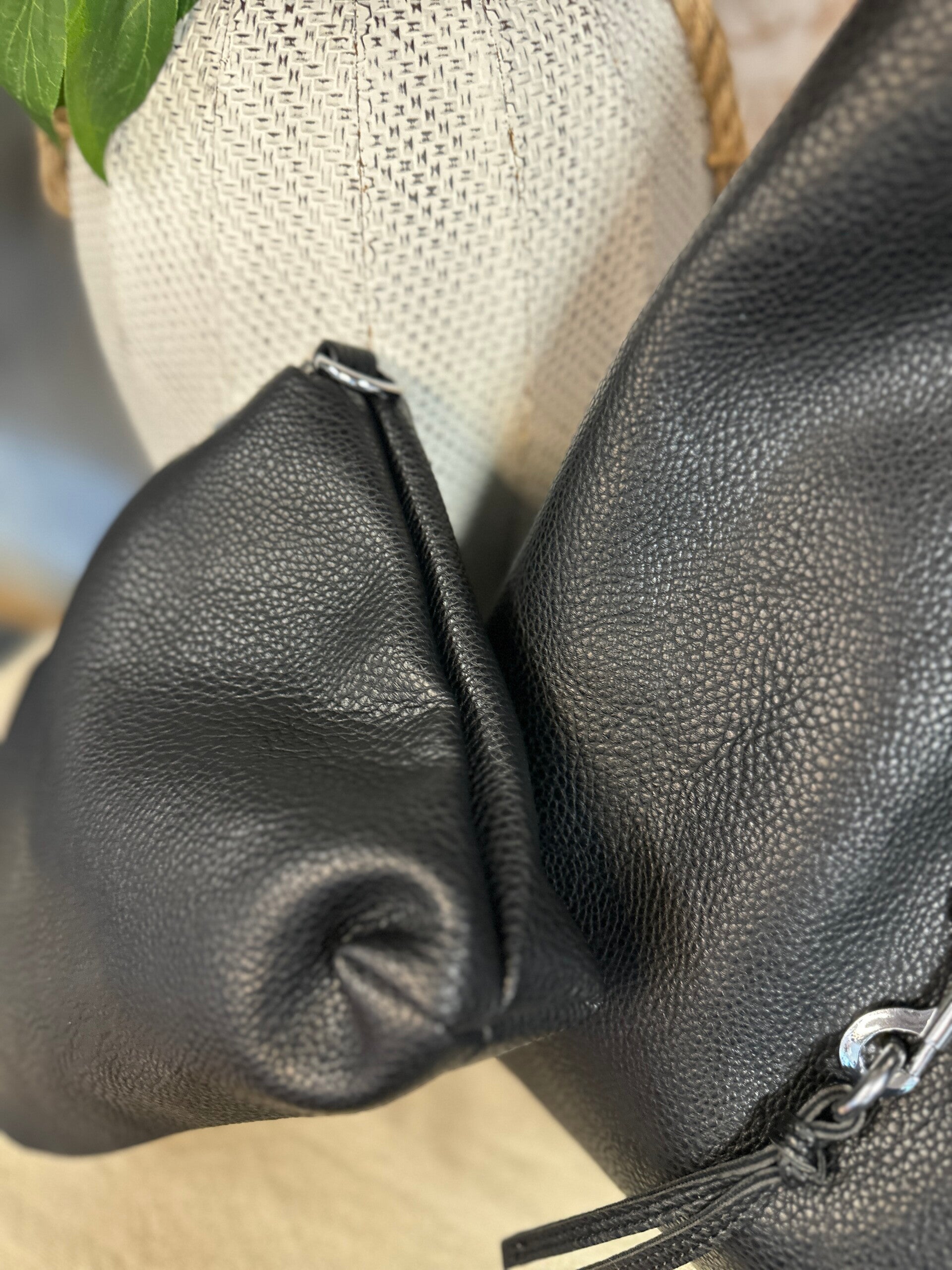 Borsa nera ecopelle, un manico, finitura laterale , pochette compresa con tracolla da utilizzare sia per la borsa che per la pochette