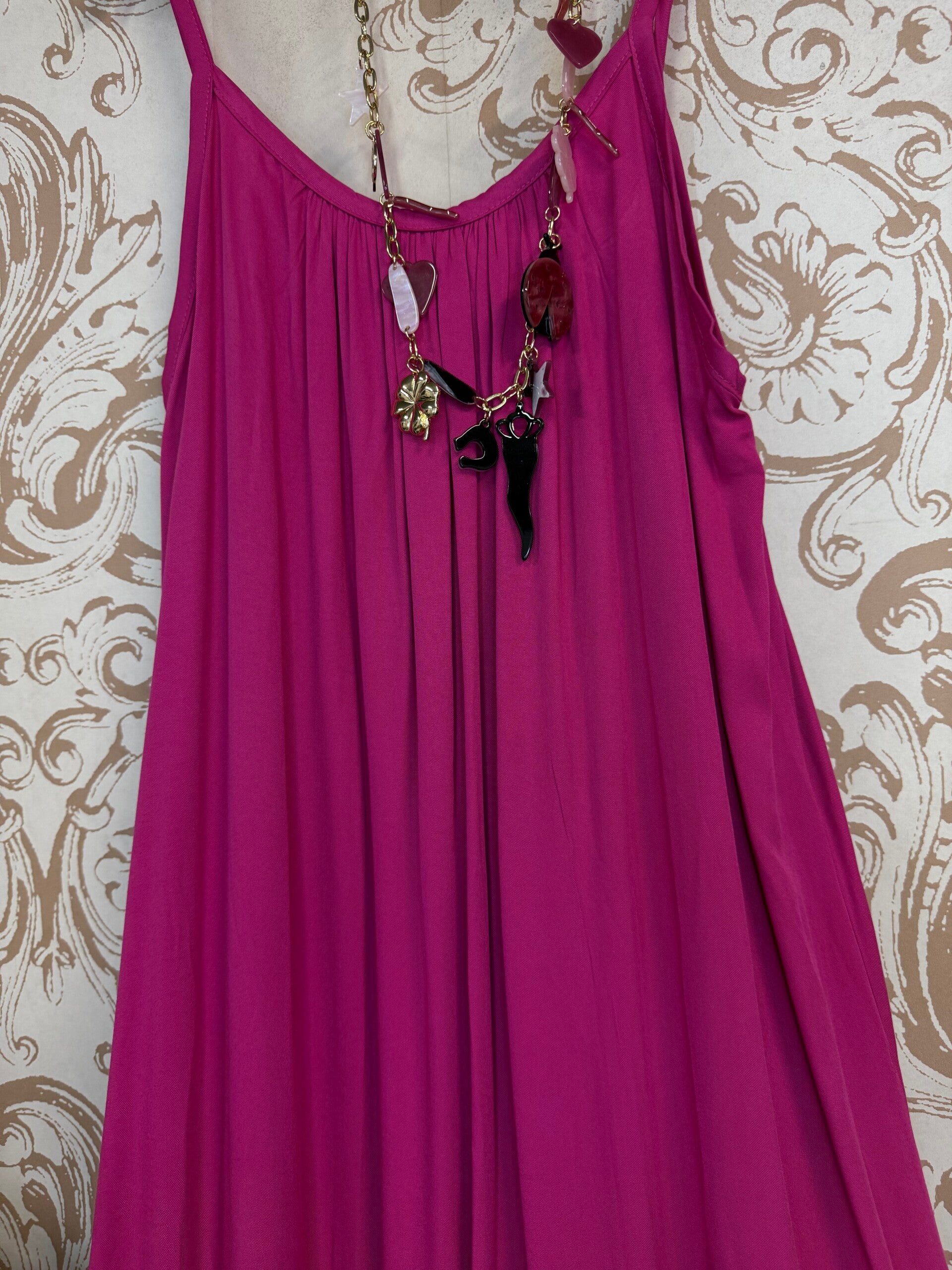 Abito lungo Lumina, viscosa, colore rosa intenso, spallina tg unica