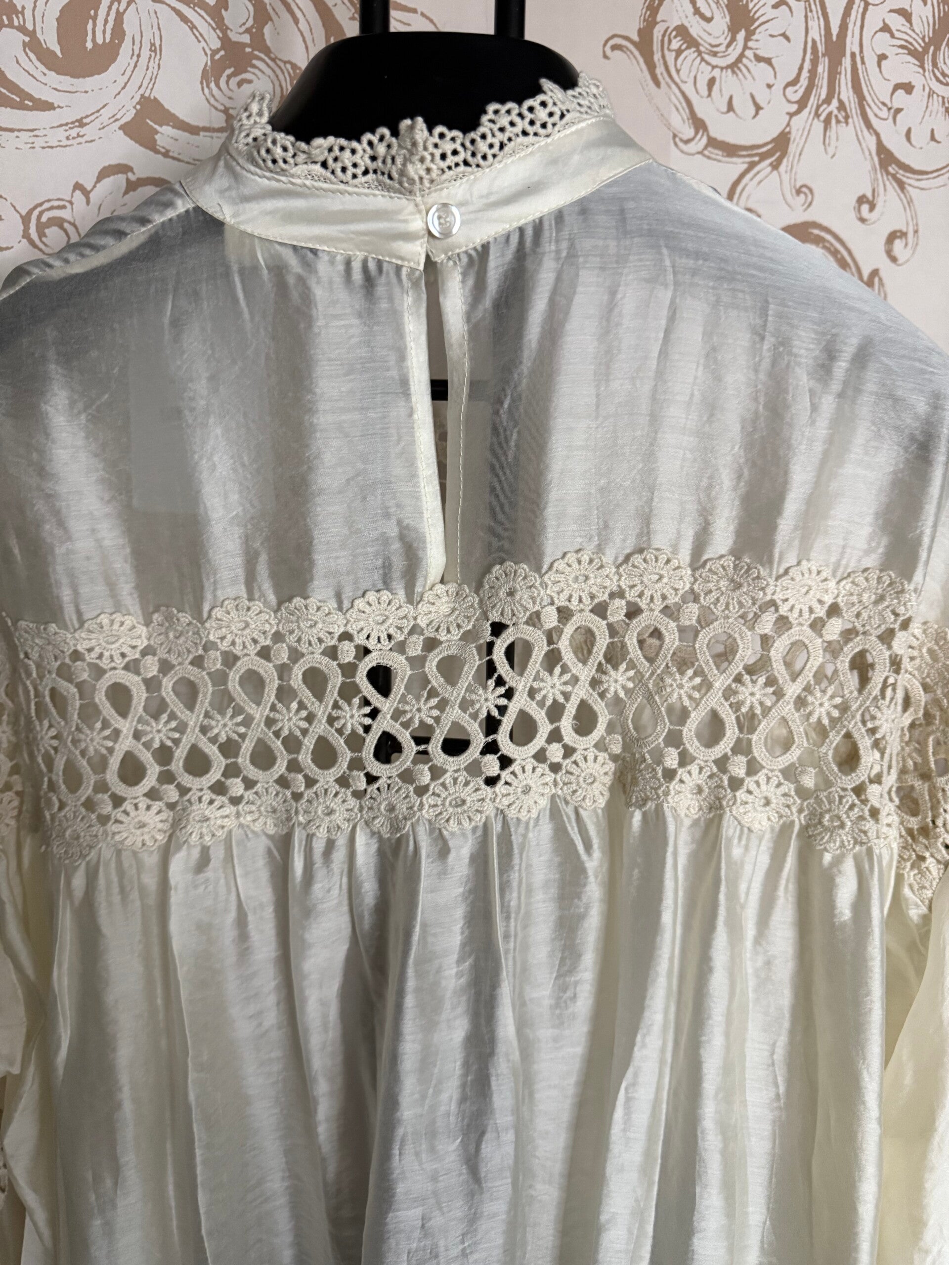Camicia maniche lunghe inserti in pizzo colore avorio- 85% lyocell 15% poliestere 68 tg unica
